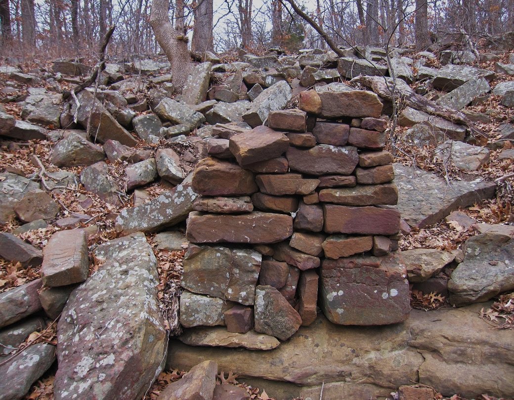 Right in the middle of this natural arena was this pile of rocks, that reminded me of an alter. That, along with the blood red markings on the trees, and the steel pipe twisted around the tree was really creeping me out. I took this picture, and looked all around me, taking inventory of my surroundings as I decided where to go from here. That's when I saw this pile of bones.